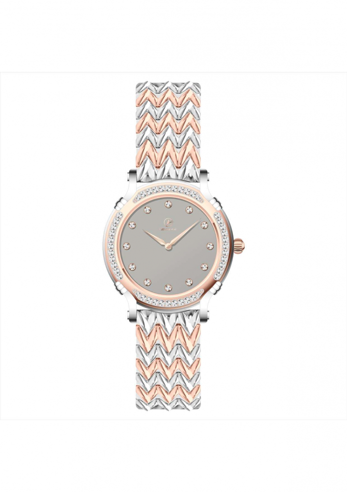 ساعة يد نسائية مقاس 28 بمينا رمادي وسوار ستانلس ستيل فضي نحاسي مقاومة للماء - H015127CSAI