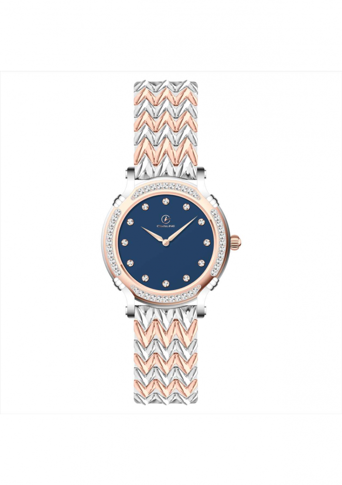ساعة يد نسائية مقاس 28 بمينا كحلي وسوار ستانلس ستيل فضي نحاسي مقاومة للماء - H015127CSNI